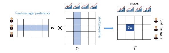 事实上,投资者的行为偏好透露了其对股票本质的理解(如图8建模)。比如,有些投资者偏好成长型股票,有些偏好周期型股票;有些投资者更了解重工业,而有些更多地投资了高新技术。基于这样的情景,我们尝试从投资者的投资行为中学习股票的本质特征。