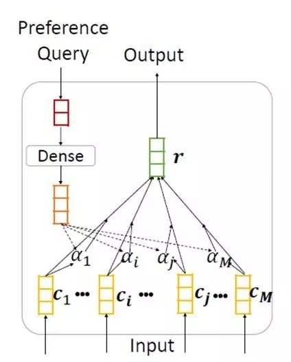 另外,相同的新闻和词语可能对表示不同的用户具有不同的信息量。因此,我们提出了一种个性化的注意力网络,其利用用户 ID 的嵌入向量来生成用于词和新闻级注意的查询向量其结构如图14所示。