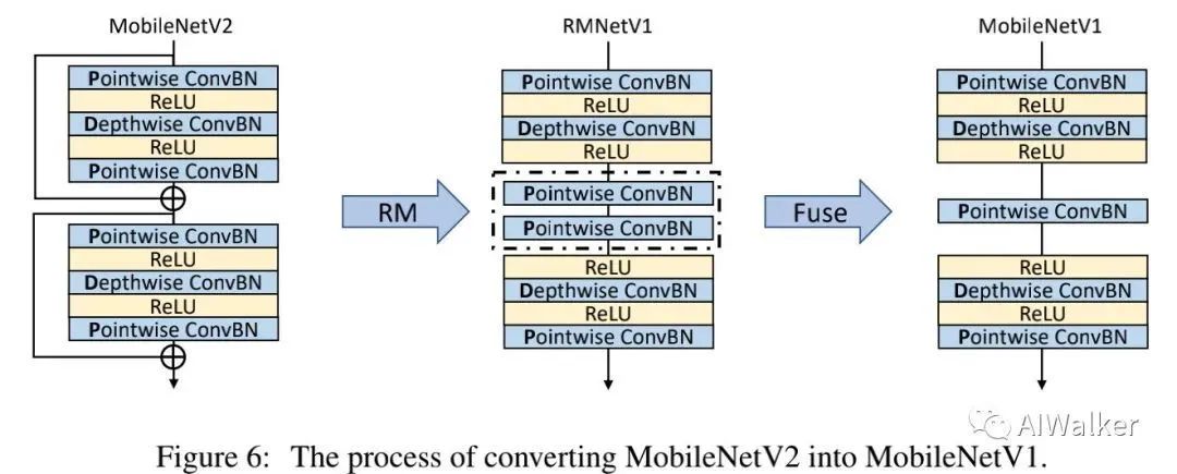 RMNet经过参数量后等效于MobileNetV1,这就非常有意思了:MobileNetV2是通过利用残差连接提升MobileNetV1的性能而得到,而RM与参数融合则将MobileNetV2退化回MobileNetV1了 。是不是可以说:RM让MobileNetV1再次伟大 !