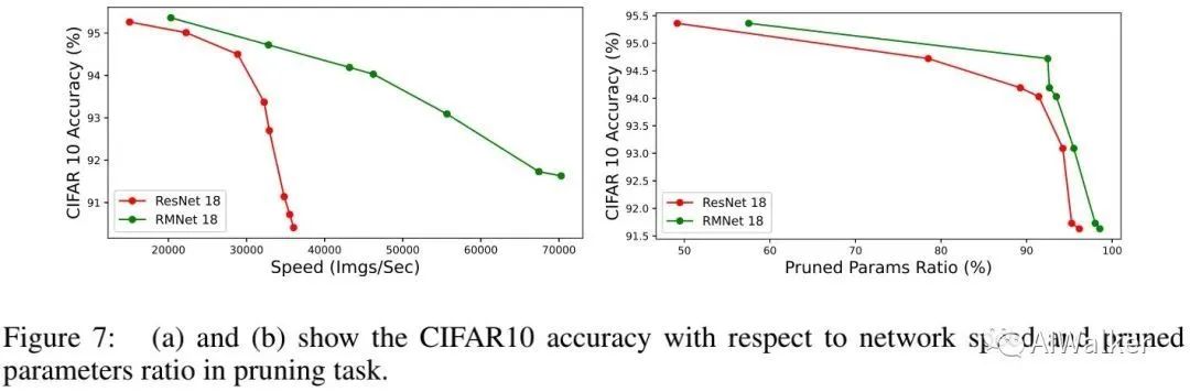 上图对比了ResNet-18与RMNet-18在L1Norm剪枝上的性能对比,可以看到: