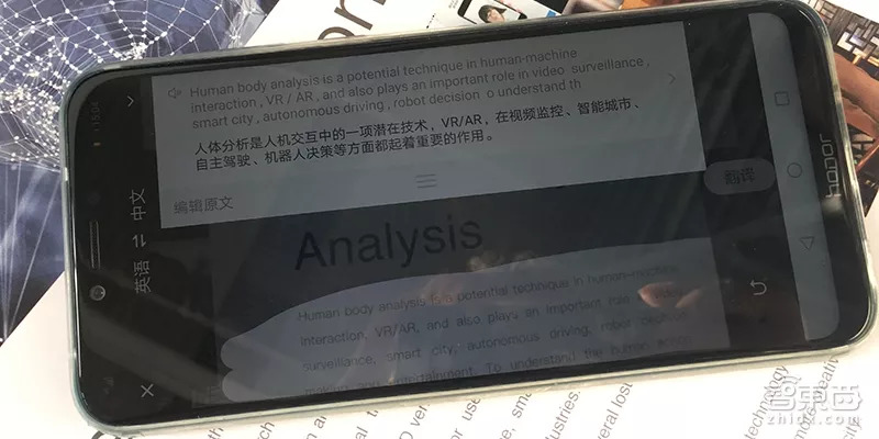 百度也向智东西展示了其图像文字识别技术的一些应用。例如,百度翻译可以做到对图片中的大段文字进行秒翻译;百度识图可以对图片中的任意一个区域画圈,然后搜索这个划定区域内的类似图片。