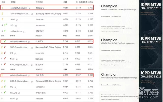 该挑战赛使用华南理工大学和阿里巴巴联合收集的已标注图像作为MTWI数据集,训练集和测试集各有10000张图像。每支队伍有三次机会提交测试结果,最终结果按每支队伍的最优成绩加以排名。最终,科大讯飞和中科大语音及语言国家工程实验室联合团队的成绩相当亮眼,在三项任务全部夺魁。