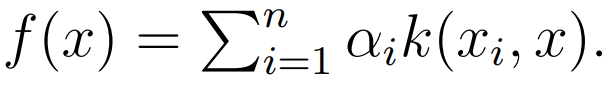 核方法提供了另一种方法定义函数。我们一般定义一个半正定的核函数 k(x, x' ),它将捕捉 x 和 x'之间的相似性,并通过对比一组样本而定义整个函数: