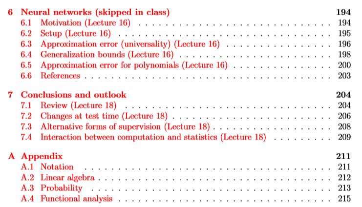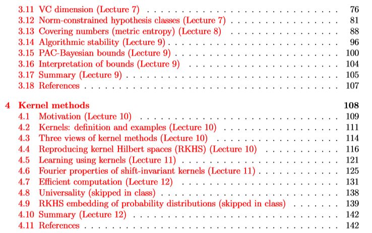 本课程分为四个部分:渐近性、一致性收敛、核方法和在线学习。我们将从非常强的假设(假设数据是高斯的、渐近的)转变为非常弱的假设(假设数据可以对抗地在在线学习中生成)。在这方面,核方法有点不同;它更重要的在于提供表达能力,而不是统计学习。