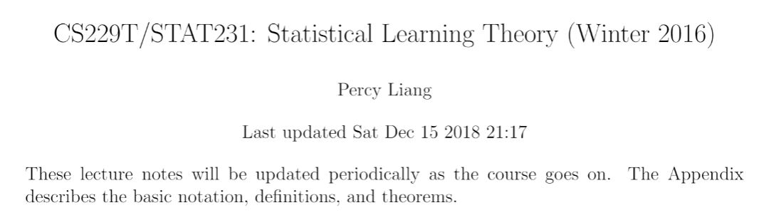 CS229T/STAT231 是由斯坦福大学开设的统计学习理论课程,着重于对机器学习算法统计特性的理论理解,涉及机器学习算法何时起作用和原因、如何形式化算法从数据中学习的含义、如何使用数学思维来设计更好的机器学习方法等基本课题。今天要介绍由斯坦福大学计算机系教授 Percy Liang 近期公布的 CS229T/STAT231 的学习笔记。