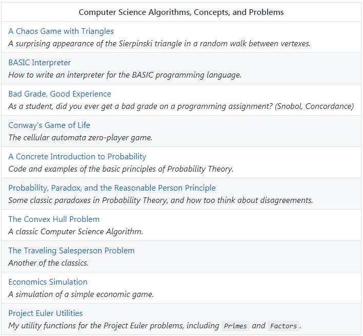 机器学习离不开Python。所以,全球第一的AI教科书作者、Google Research总监Peter Novig就专门为初学者做了一个关于Python编程示范操作的GitHub项目,具体的内容可见下文,希望该项目会有助于你的Python编程和机器学习技能。enjoy!