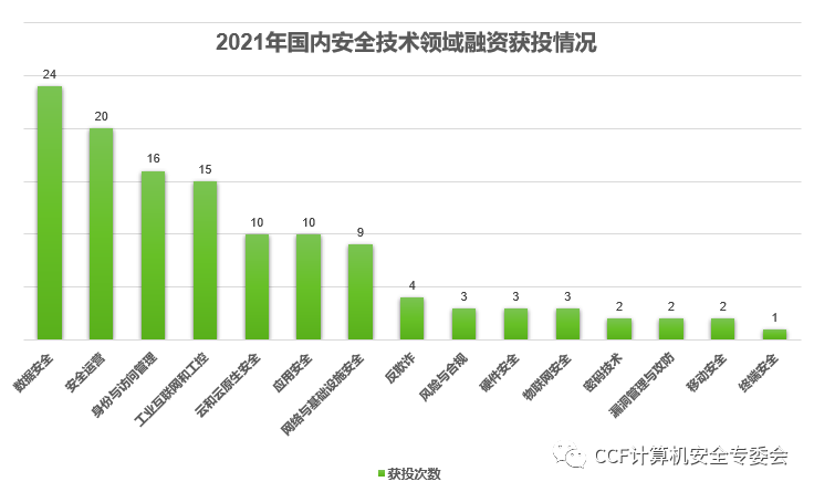 数据安全领域在2021年共获得24笔融资,在所有细分领域获投次数中最多,该领域目前融资规模近20亿元(仅统计已披露具体融资金额的数据,实际规模更高)。我国今年陆续颁布《数据安全法》、《个人信息保护法》以及《关键信息基础设施保护条例》等重磅法案,从政策层面对数据合规以及各行业的数据监管提出了更严格的要求。数据安全无疑成为本年度资本竞相追逐的热点技术领域,在众多安全投融资活动中拔得头筹。