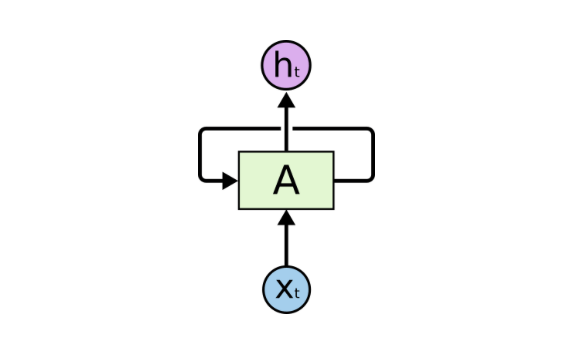 RNN通过简单的循环记住从之前的输入中学到的东西。该循环接受上一时刻的信息,并将它附加到当前时刻的输入上。下图显示了基本的RNN结构。在某一具体时步t,Xt是网络的输入,ht是网络的输出。A是一个RNN单元,其中包含类似前馈网络的神经网络。
