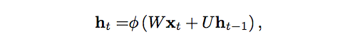 如果你偏爱数学,许多RNN使用下面的等式定义隐藏单元的值: