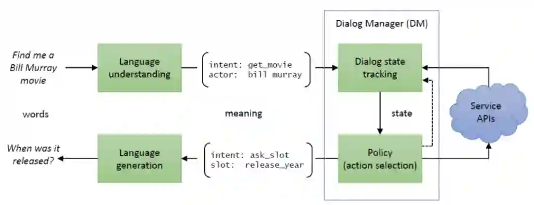 对话管理(Dialog Management, DM)是任务导向型对话系统的重要组成组件。给定对话历史,DM 可以预测对话状态并决定对话智能体应该采取的下一步行动。最近,对话策略学习(dialog policy learning)作为一种强化学习问题得到了广泛的论证,越来越多的研究也开始重点关注 DM 的适用性。