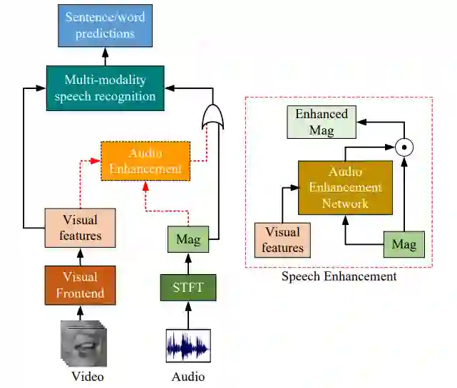 视觉通常被用作音频语言识别(audio speech recognition, ASR)的补充模态,尤其是在单独音频模态性能显著下降的噪声环境中。在与视觉模态结合后,ASR 升级为多模态语音识别(multi-modality speech recognition, MSR)。