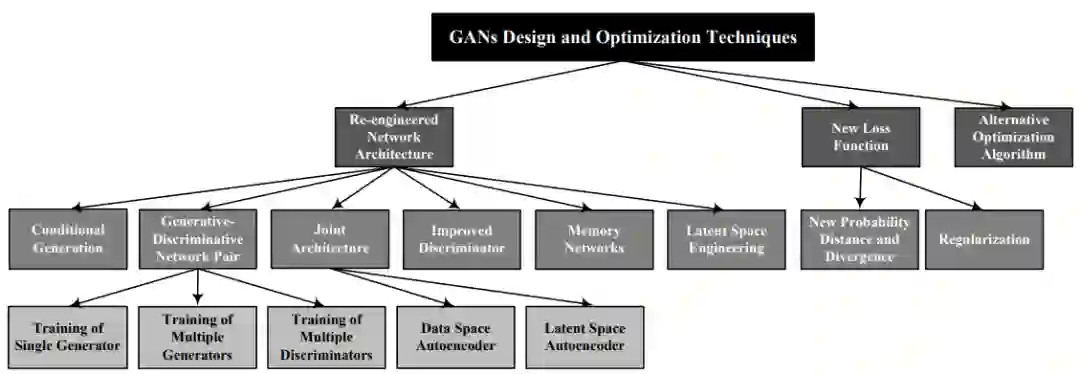 ,主要亮点是基于重新设计后的网络架构、新的目标函数和优化算法提出了 GAN 设计和优化方法的新分类法,并探讨了现有研究工作如何解决存在的挑战。