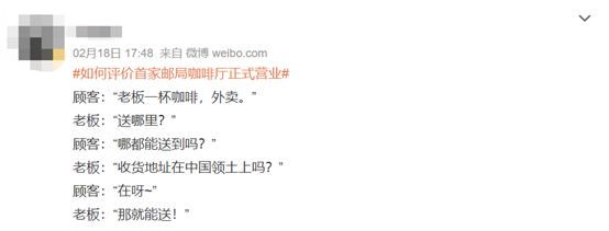 中石化和同仁堂进军咖啡市场后,“汽油味咖啡”、“中药味咖啡”成了不少网友的调侃对象。而对于邮局咖啡,网友也发出了灵魂拷问:“卖咖啡有编制吗?”“在邮局咖啡上班算不算公务员?”“别的不谈,我要是能在这上班,算不算进国企了?”