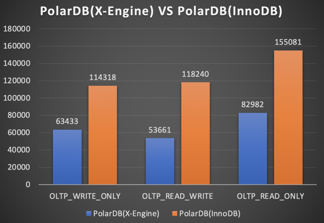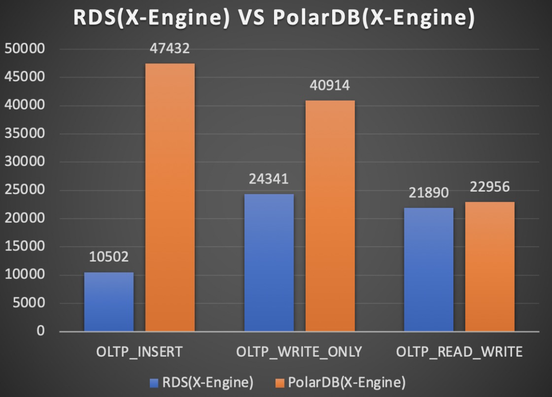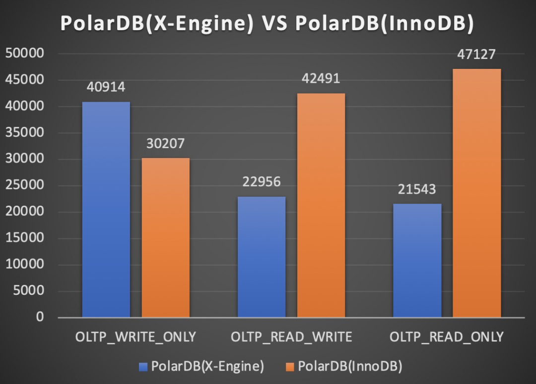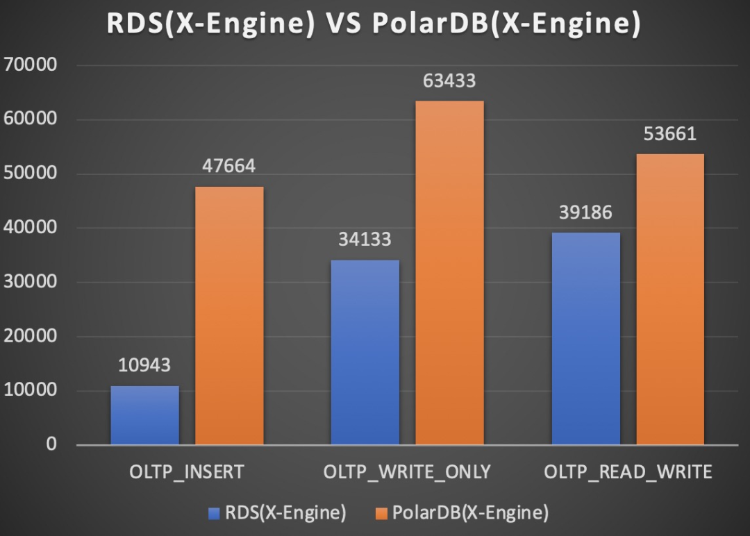 基于X-Engine引擎实现一写多读能力后,我们采用基准测试工具sysbench对性能做了摸底,主要对比了RDS(X-Engine),PolarDB(X-Engine)以及PolarDB(InnoDB)的性能。