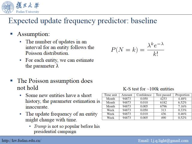 接下来,就是要估计每个实体的更新频率了。最开始,我们基于这样一个基本假设:实体更新频率遵循泊松分布。但后来实验发现,这个分布并不成立。