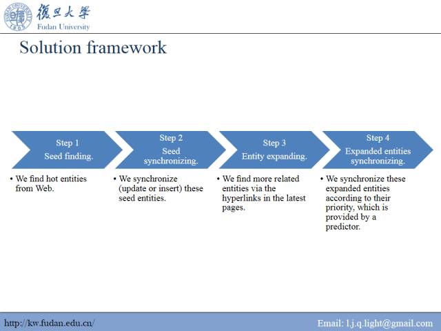 整体框架如下:首先监控热词获得种子实体,然后同步这些种子实体。接下来通过实体的相关实体来扩展得到更多的待更新实体,最后根据这些待更新实体的优先级来进行更新。