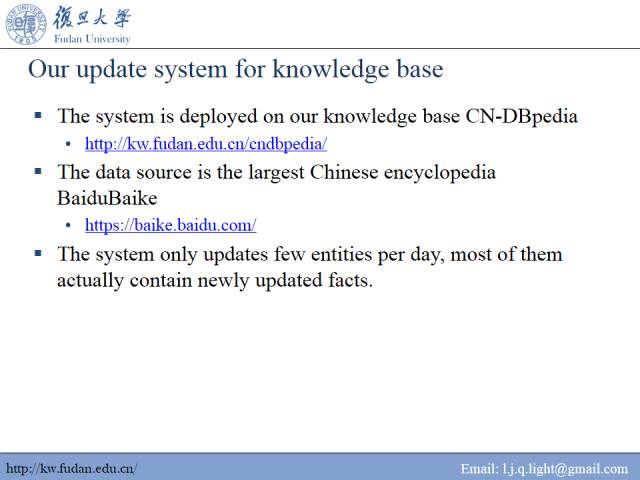 第三,我们将这套策略部署到了中文知识库CN-DBpedia中,提高了知识库的时效性。