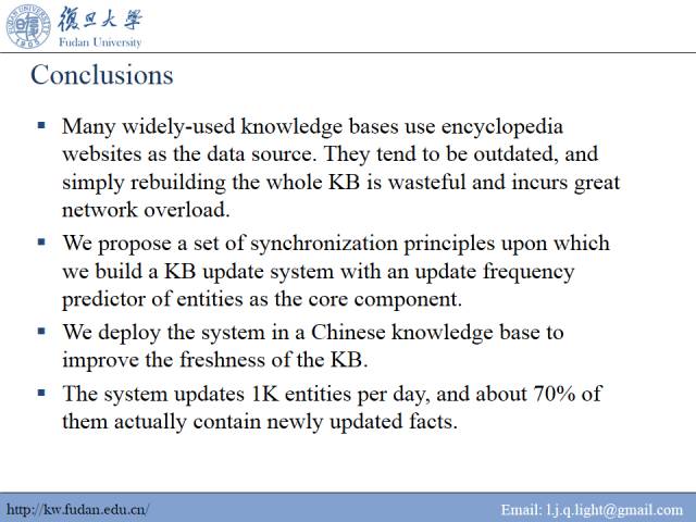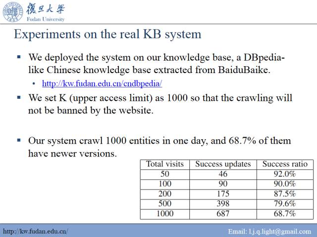 最后,这个系统每天更新一千个实体,统计发现,其中70%的实体的知识确实发生了变化。