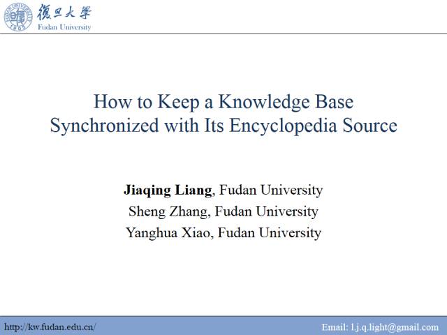 本文整理自复旦大学知识工场梁家卿博士在IJCAI 2017 会议上的论文报告,题目为《How to Keep a Knowledge Base Synchronized with Its Encyclopedia Source》,作者包括:梁家卿博士(复旦大学,上海数眼科技发展有限公司),张圣硕士(复旦大学),肖仰华教授(复旦大学,上海互联网大数据工程技术研究中心,小i机器人)