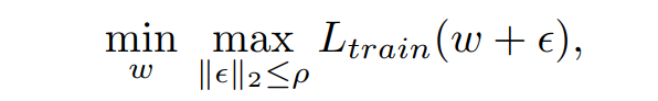 从直觉上看,SAM寻找的是可以使整个邻近训练损失最低的参数w,训练损失 通过构造极小极大目标: