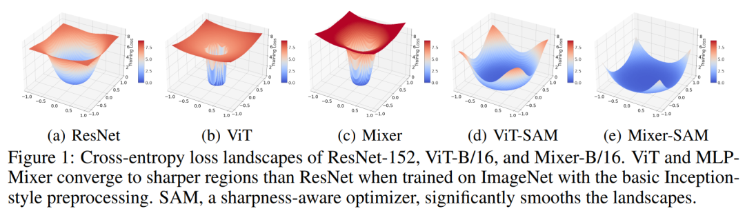 由于SAM, ViTs和mlp-mixer都汇聚在更平滑的区域,如图1(d)和1(e)所示。