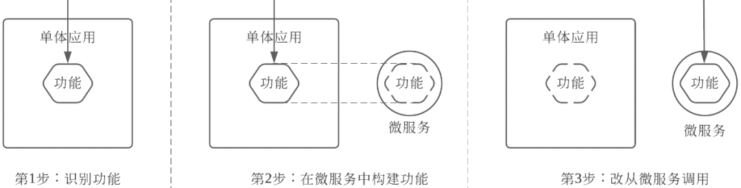 绞杀者应用的开发过程也有三个阶段: