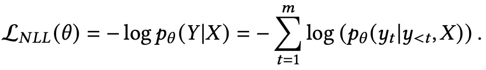 文本生成过程可以看做是一个序列化的多标签分类问题,它可以通过负对数似然(NLL)损失进行优化。因此,文本生成模型的目标函数是一个最大化似然估计(MLE):