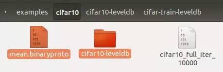 运行之后,将会在examples中出现数据库文件./cifar10-leveldb和数据库图像均值二进制文件./mean.binaryproto