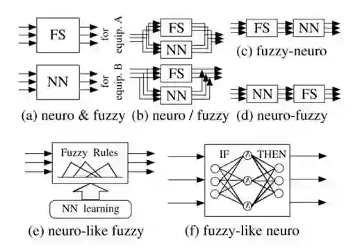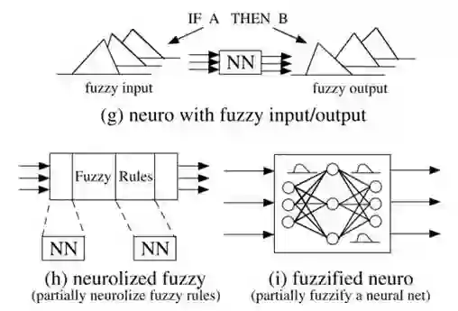 在 90 年代初,就存在对模糊神经网络的充分研究。在明年一月,IEEE 的期刊 Transactions on Fuzzy Systems 会推出深度学习特刊。模糊逻辑和神经网络有多种结合方式,在前深度学习时代,有的方式把模糊逻辑和神经网络模块拼接或并行,还有一些把每一个神经元的运算模糊化 ([2])。
