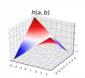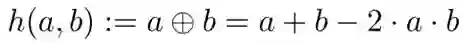 我最近的工作 Generalized Hamming Network(GHN)在网络结构上属于上图(i)这类,即对每个神经元进行模糊化的类型。而与传统 FNN 的区别,在于不需要刻意添加模糊过程,而是对一般的神经元计算进行规范,使之遵循模糊逻辑的「异或」运算规则。具体的运算公式也很简洁 (如下),很容易验证,这个公式在输入 0 或 1 时,就退化为一般的二值异或运算。而下图中的红蓝函数曲面,可以看作是扩展到实数域的真值表。其中,偏红或蓝的部分,代表确定性高的判断,而白色接近 0.5 的区域则包含了比较模糊,不确定的判断 (细节见 [1])。
