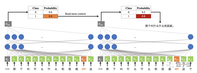 当锚点在“姬”这个字上的时候,如果当前边界决策的概率小于某个阈值,那么就必须考虑更多的上下文(添加额外的上下文“这个”),得到更可靠的决策。这之后,“那个叫什么什么呃妖姬”这几个字就被标记为一个信息单元。