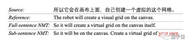 对于“所以它会在画布上面,自己创建一个虚拟的这个网格”这个句子,整句NMT(神经机器翻译)模型能够生成准确的翻译。问题是,这样的模型需要等到一个完整句子结束,才能开始翻译。