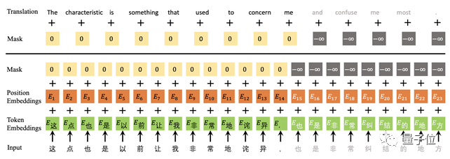 就像这样,在训练期间,不屏蔽源输入,但屏蔽与第一个信息单元对齐的翻译内容。这种策略能迫使模型学会补全剩余的翻译内容,而不是聚焦于生成完整句子的翻译。