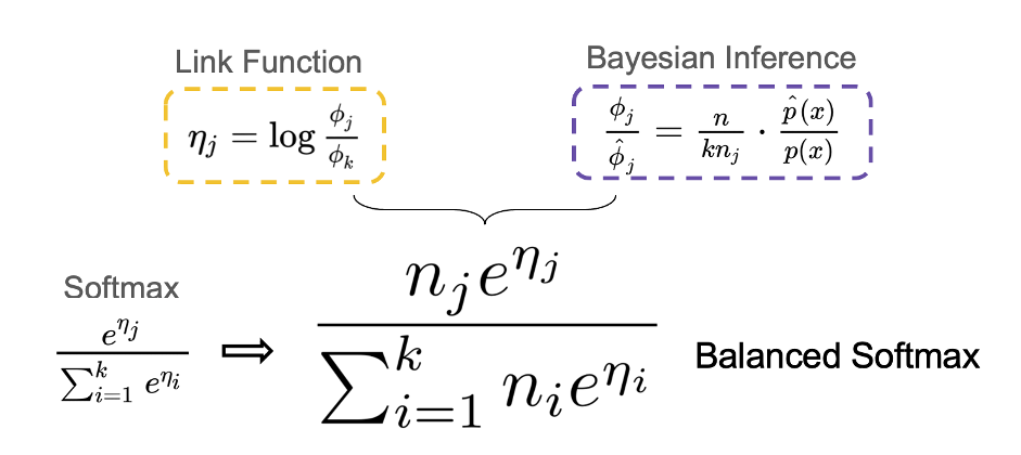 为了避免这个偏差,我们从多项分布的Exponential Family形式出发重新对Softmax进行了推导并显式考虑了标签分布迁移,得到了适合长尾问题的Balanced Softmax。同时,我们发现Balanced Softmax可以近似地最小化长尾设定下的泛化错误上界。