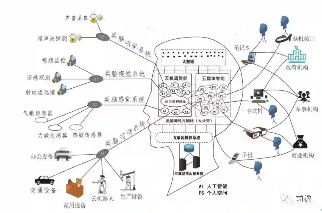 互联网正在从“网状结构”向“类脑结构”发展,由此产生的互联网大脑将数十亿人类的群体智能和数百亿设备的机器智能连接在一起,形成大自然前所未有的超级智能。