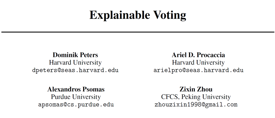 本文是NeurIPS 2020入选论文“Explainable Voting”的解读,该项研究由北京大学、普渡大学、哈佛大学联合完成。