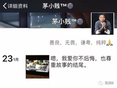 “嗯,我爱你不后悔,也尊重故事的结尾”,这是茅侃侃生前朋友圈最后一个动态。