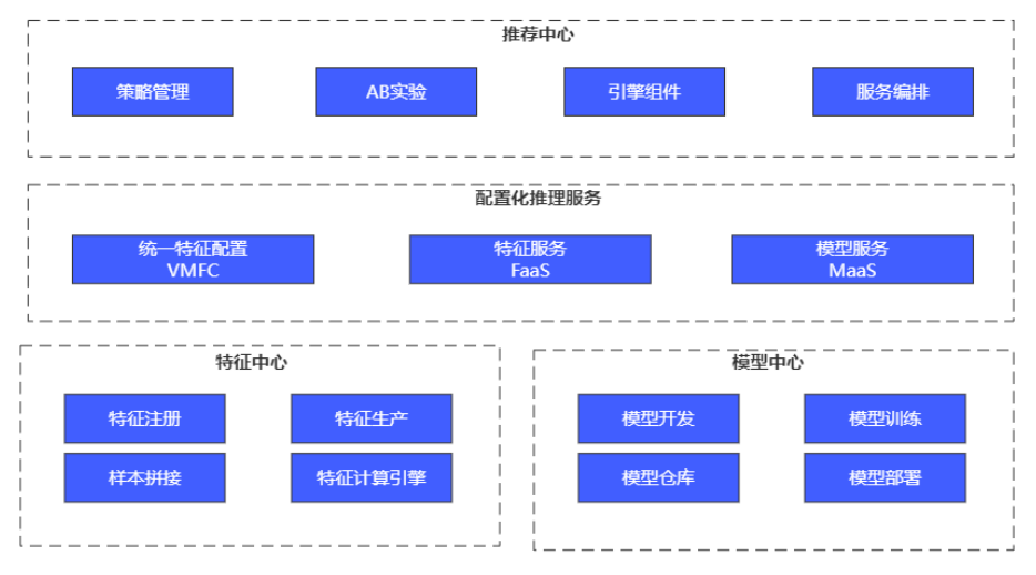 从下图可以看到,配置化推理服务在整个推荐中台的位置和作用。