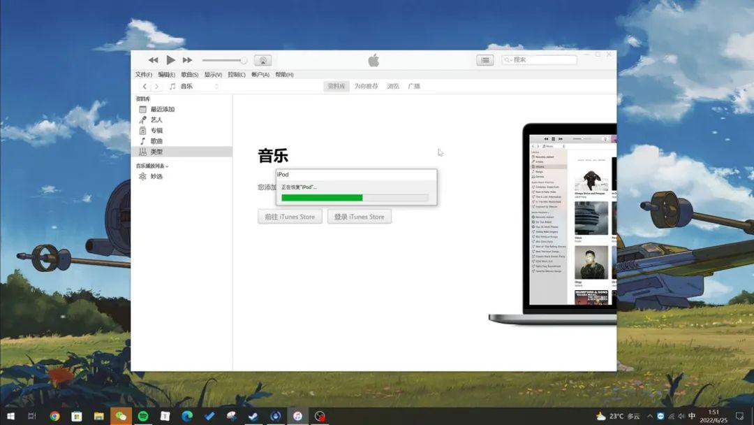 组装好后数据线连接电脑,打开 iTunes(如果使用的是 Mac 则是访达)选择恢复 iPod 即可,这个过程可能会比较慢耐心等待即可。