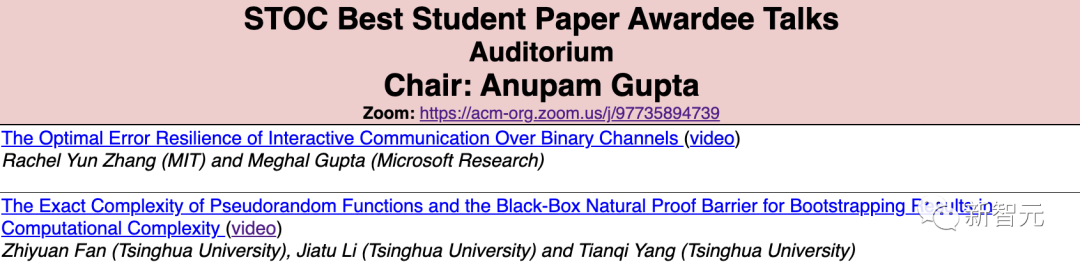 而在历届STOC的论文展演中,姚班学子也是常客。如2020年就有4篇,2021年有3篇。