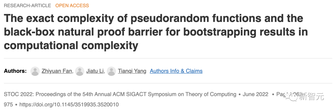 值得一提的是,李嘉图和杨天祺的另一篇论文也被STOC 2022接收了。