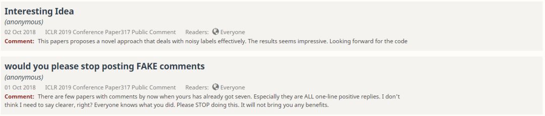 这些评论并不总是与论文相关,很多人似乎在用这种方法增加自己论文的引用频率,评审员很难屏蔽这些评论。