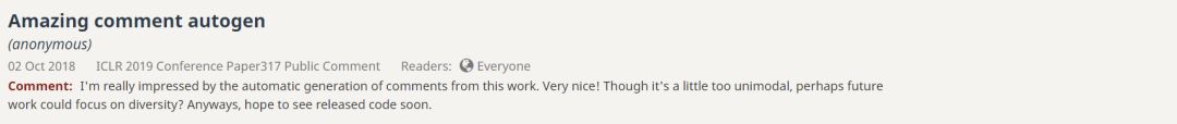 但之后刷屏式的评论仍然继续出现,网友 X 只好敬佩地说道:非常 amazing 的自动评论生成方法,未来是否会从多样性方向优化?期待代码开源。。。