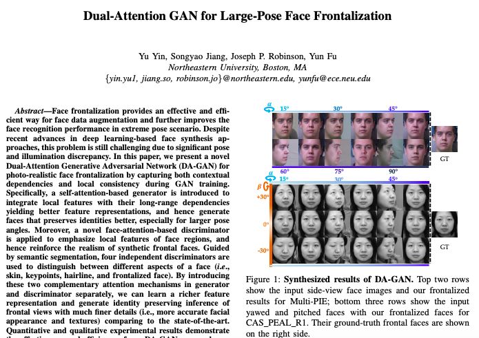 论文名称:Dual-Attention GAN for Large-Pose Face Frontalization