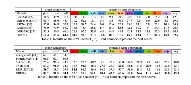 RGB图像包含对象的纹理细节,而深度图像能捕获与形状补全任务具有高度相关性的几何线索,因此同时使用RGB和深度图像可以进一步提高语义场景补全模型的精度。基于此,这篇论文提出了名为GRFNet的3D门控递归融合网络,该网络可以自适应地选择并通过使用门和存储模块来融合深度图像和RGB的相关信息。在单级融合的基础上,这篇论文还进一步提出了一种多级融合策略,可以对网络中不同级之间的相关性进行建模。在两个基准数据集上进行的实验证明了GRFNet在语义场景补全任务中进行数据融合优于现有的方法。
