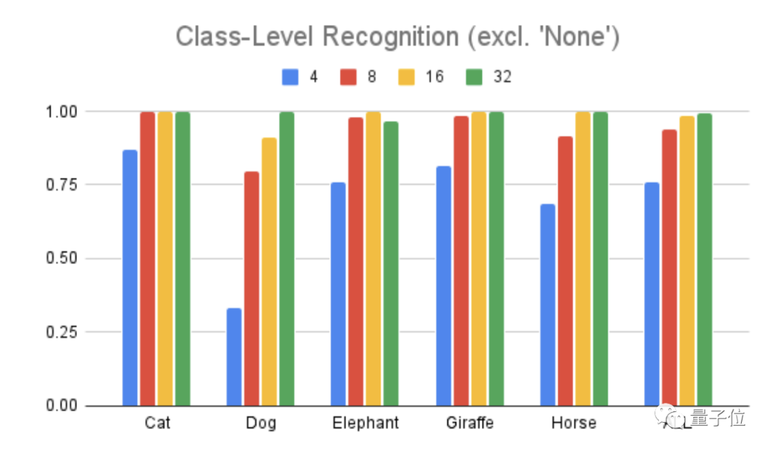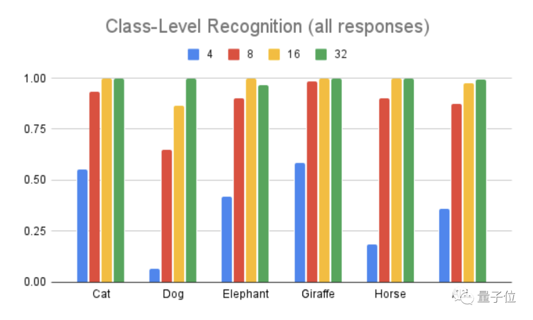 从图中可以看出,无论什么动物,在高度抽象的时候(4笔画),辨识度都很低,随着笔画越来越多,辨识度也会逐渐提高。