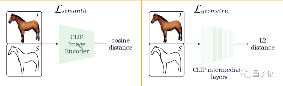 具体实现上,模型会根据图像的特征图先生成初始线条的位置,然后靠CLIP构建两个损失函数,来控制抽象画几何相似、语义理解准确。