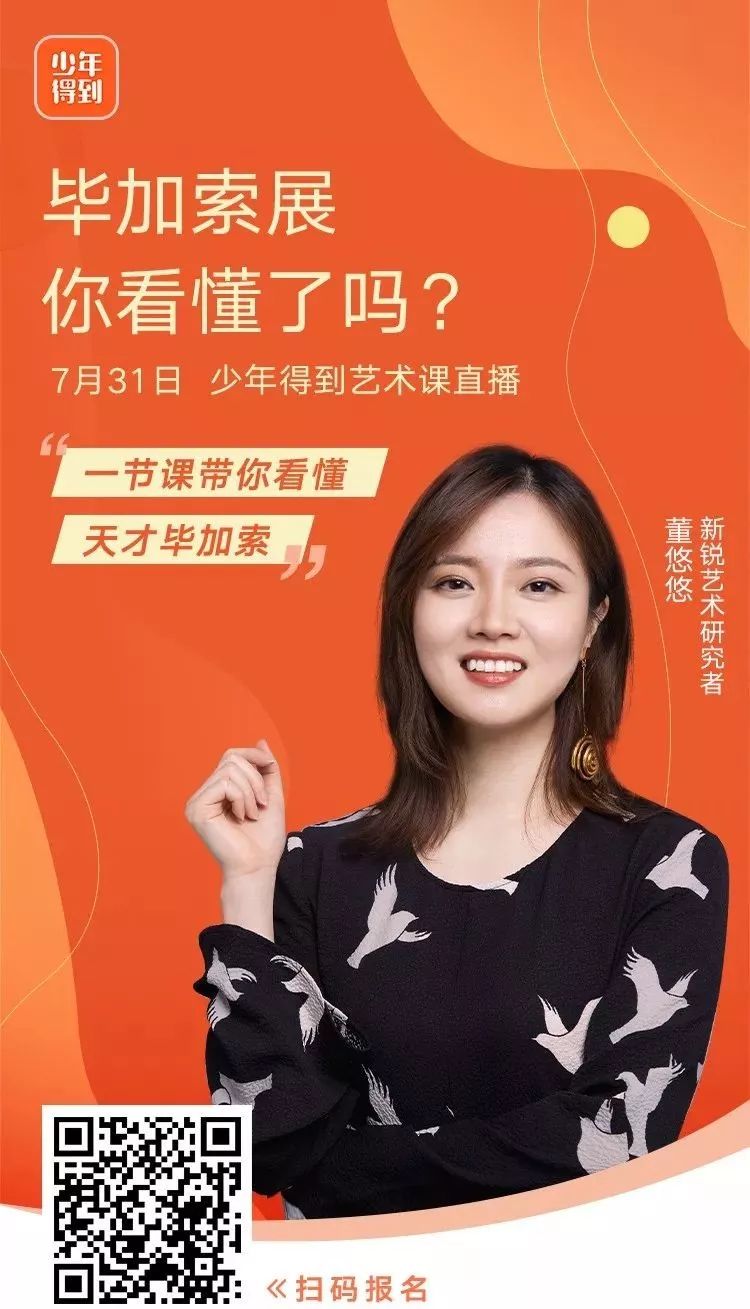 如果你想足不出户,就能领略本次“毕加索——一位天才的诞生”展览的精华作品,欢迎报名少年得到App“一节课带你看懂天才毕加索”直播课,直播时间为今晚19:30-20:30。