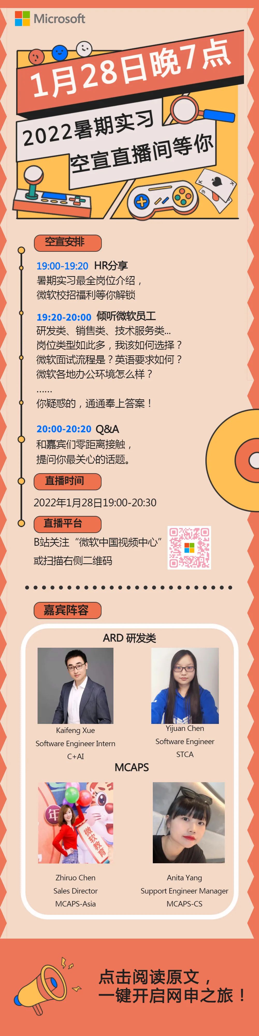 微软2021年暑期实习生招聘空中宣讲会丨直播倒计时1天