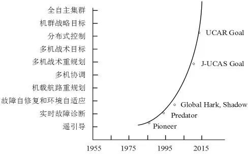 集群无人机受机体性能限制,不具备远距离的高效作战任务能力。无人机系统的典型特征就是 “平台无人,系统有人”,随着单机系统自主控制能力和智能化水平的提高,通过人机系统智能融合和集群自适应学习,可以实现智能集群和有人系统的高效协同作战,极大增强集群无人机作战能力。关键技术有人机交互、人机功能动态分配、人机综合显控技术、无人机自主学习能力/推理能力提升、平台状态/战术态势/任务协同综合显示等。